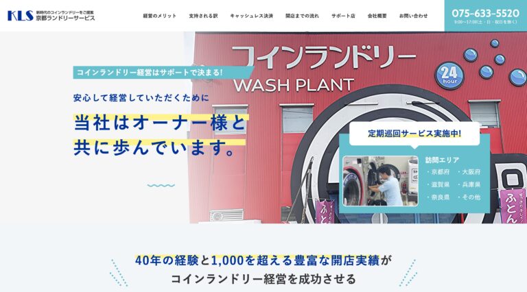 京都ランドリーサービスは、関西圏を中心に、機器導入から開業支援、定期巡回管理・販促支援までワンストップで請け負うコインランドリー支援事業者。多くの開店実績に基づき、土地オーナー・投資家の参入を支援し…