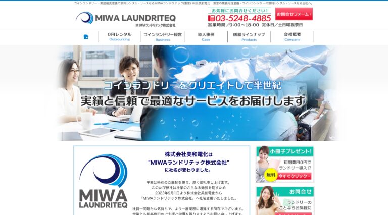 MIWAランドリテックは、1969年創業の老舗コインランドリー機器メーカー兼施工・運営支援会社。設計・施工から販売、レンタル/リースまで一貫対応し、首都圏を中心に多様なランドリーソリューションを提供する専門…