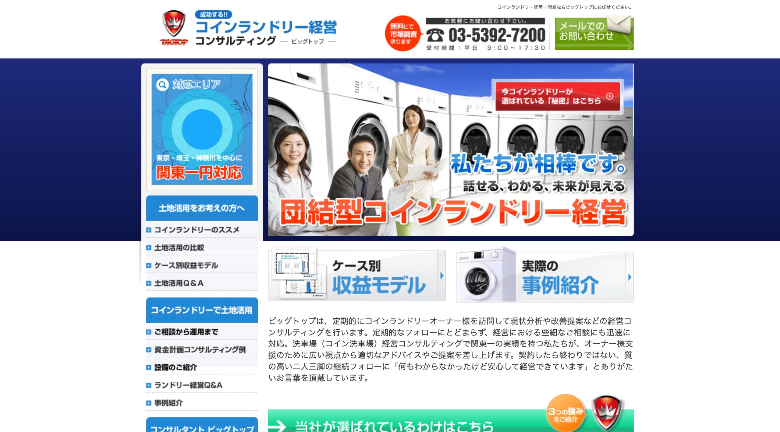 ビッグトップは、コインランドリーの設計・施工・機器販売から経営コンサルティング、運営支援までトータルで手掛ける総合ランドリー支援ブランドです。