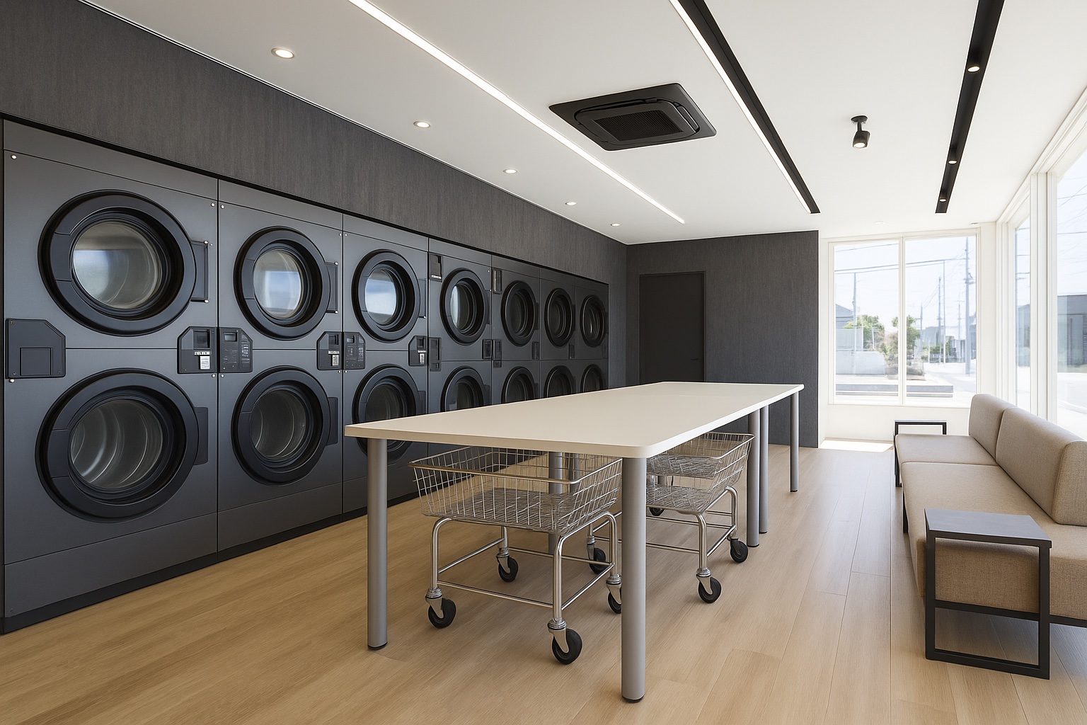 観光地や都市部では、旅行者や民泊ユーザーによるランドリー需要が拡大し、さらに共働き世帯や単身者の増加によって国内ニーズも堅調です。