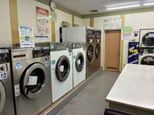 機械は、洗濯機4台、乾燥機12台、洗濯乾燥機2台。YAMAMOTO製や、アメリカ製の機械も使っています。